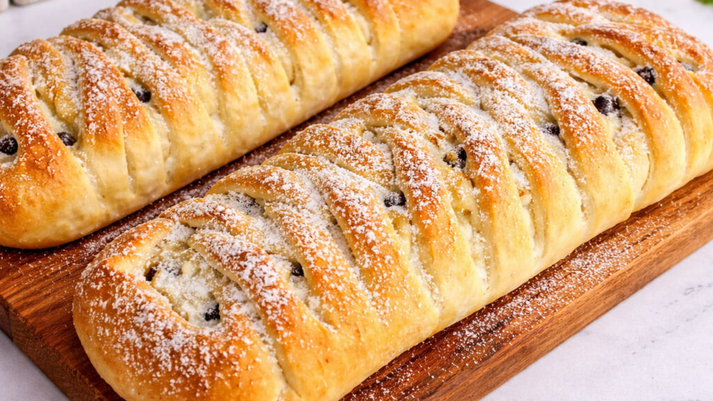 Além de linda, essa rosca é uma rosca caseira com massa fofinha, um recheio suave de ricota e o toque especial das uvas passas, que equilibram tudo com doçura na medida certa. É uma receita simples, mas com cara de preparo especial, ótima para servir no café da manhã ou da tarde.